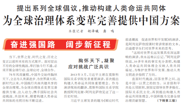 提出系列全球倡议,推动构建人类命运共同体