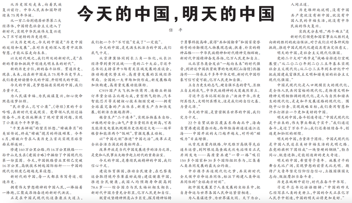从一穷二白到稳居世界第二大经济体,中国特色社会主义进入了新时代,实现中华民族伟大复兴进入了不可逆转的历史进程。(今日《人民日报》1版)