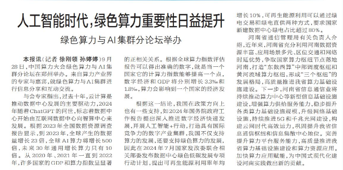 人工智能时代,绿色算力重要性日益提升绿色算力与AI集群分论坛举办