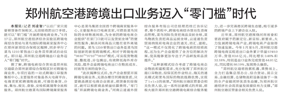 郑州航空港跨境出口业务迈入“零门槛”时代