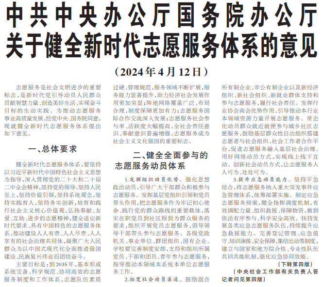 中共中央办公厅国务院办公厅关于健全新时代志愿服务体系的意见
