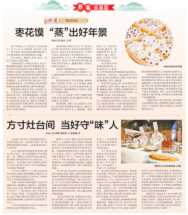 每个价格从15元至99元,每天销售七八百个;25公斤装面粉,每天用10袋……春节临近,新郑市薛店镇好想你枣立方红枣博物馆,枣山馍销售进入高潮。