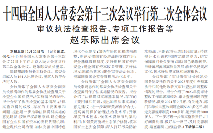 十四届全国人大常委会第十三次会议举行第二次全体会议