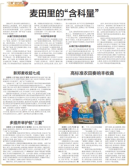 麦收时节,阳光洒在金黄的麦田上,微风吹过,麦浪滚滚。而今,科技的飞速发展和现代化的推进,为麦收带来了前所未有的高效和便捷。近日,记者再次来到麦田,和农民聊一聊“科技”为麦收带来的“新景象”——(今日《郑州日报》5版)