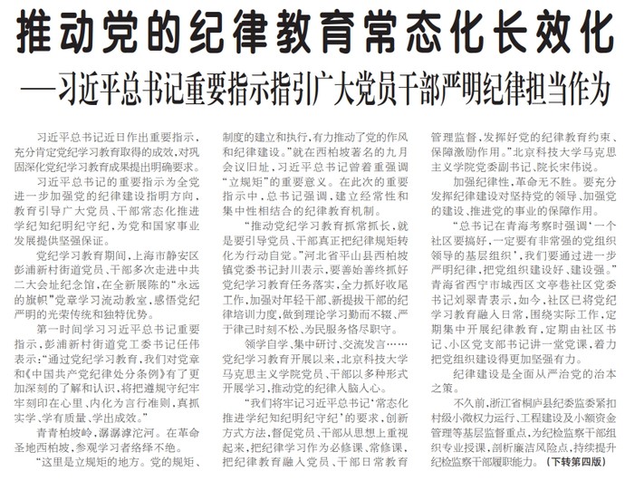 推动党的纪律教育常态化长效化