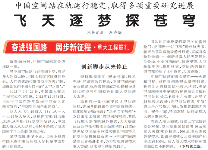 中国空间站在轨运行稳定,取得多项重要研究进展