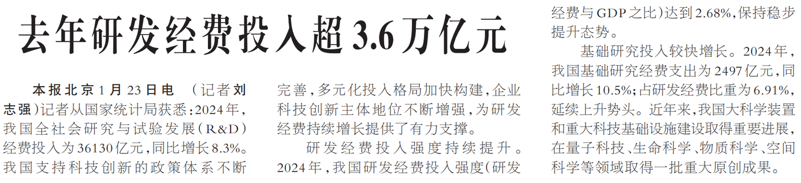 去年研发经费投入超3.6万亿元