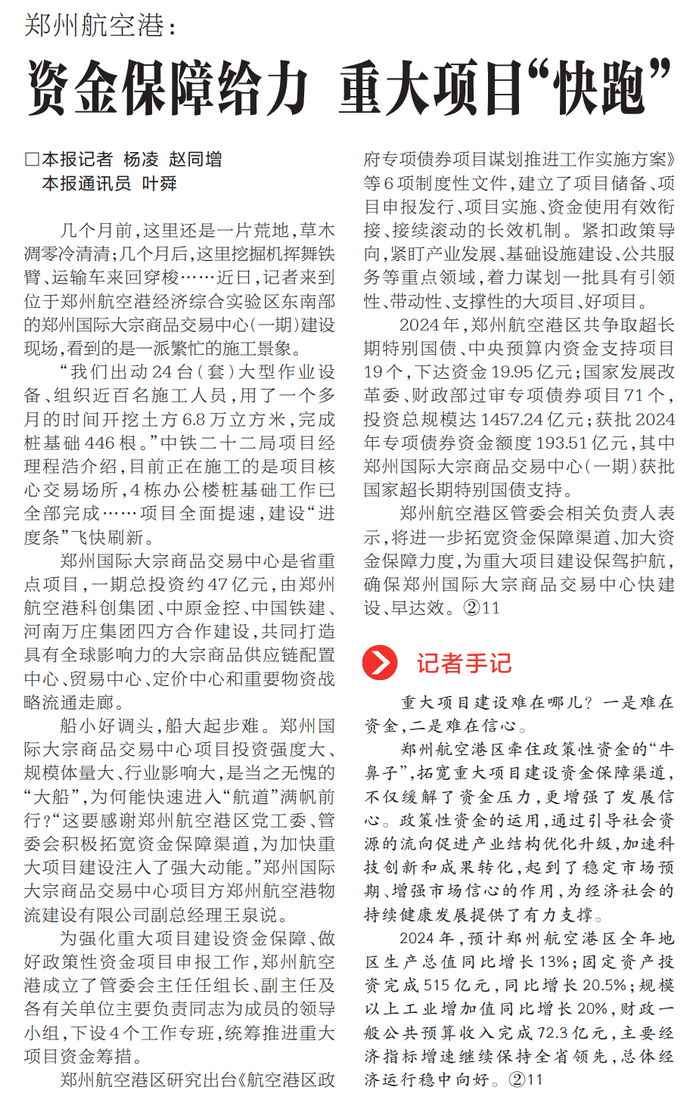 资金保障给力 重大项目“快跑”