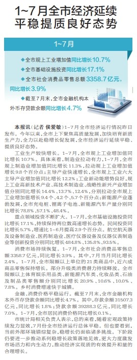 ◆截至7月末,全市金融机构本外币存贷款余额同比增长4.7%