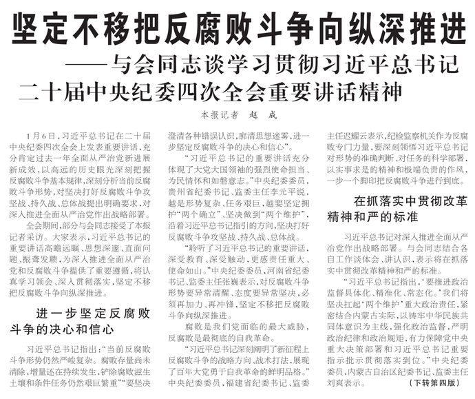 ——与会同志谈学习贯彻习近平总书记二十届中央纪委四次全会重要讲话精神