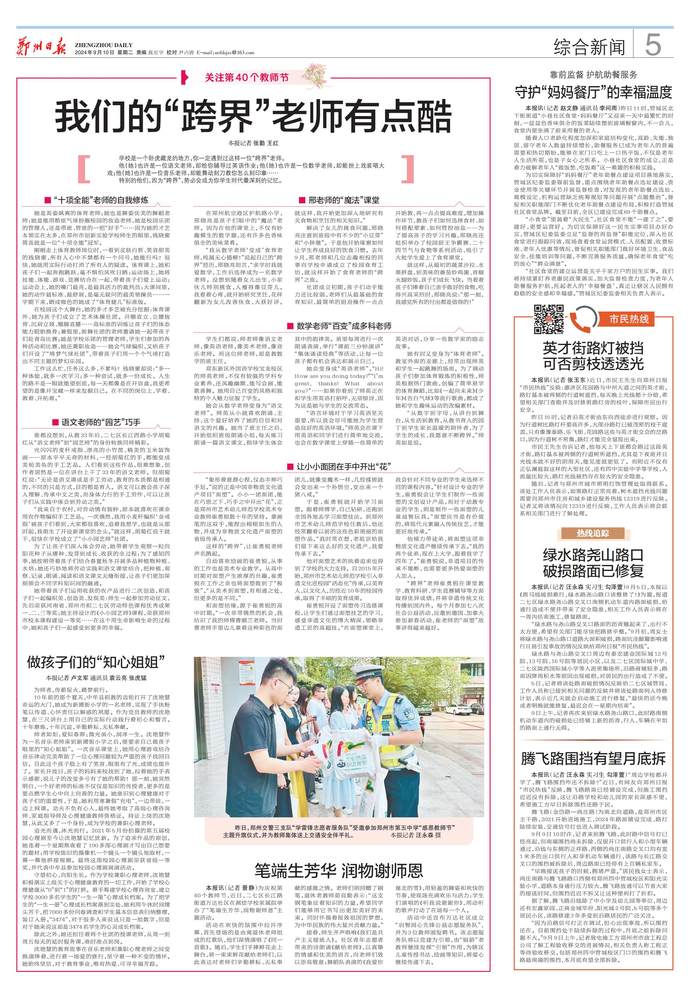 特别的他们,因为“跨界”,势必会成为你学生时代最深刻的记忆。(今日《郑州日报》5版)