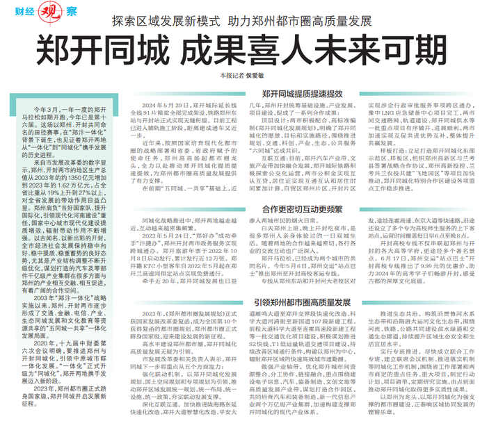 探索区域发展新模式 助力郑州都市圈高质量发展
