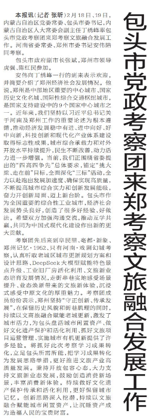 包头市党政考察团来郑考察文旅融合发展工作