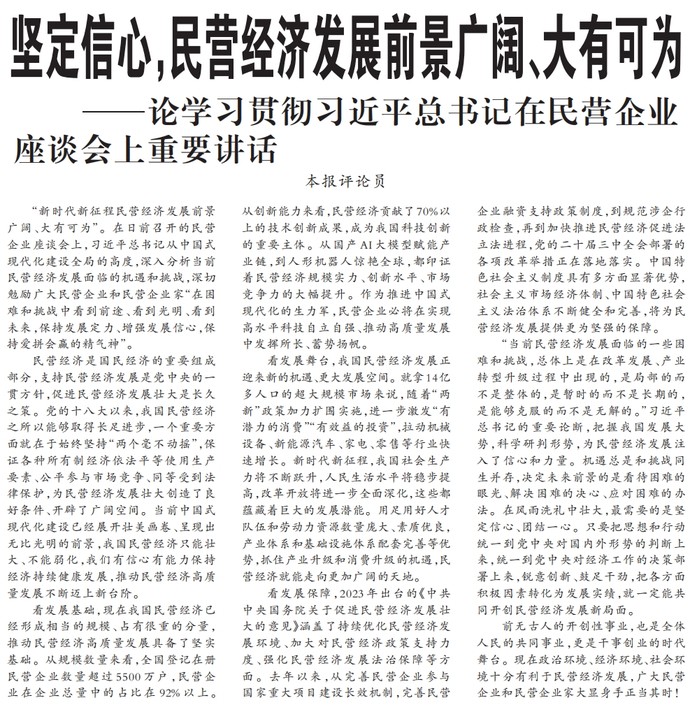 坚定信心,民营经济发展前景广阔、大有可为