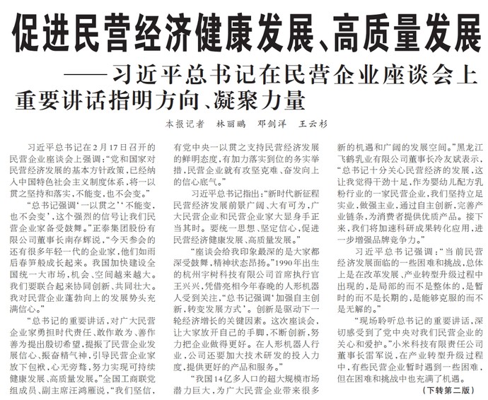 ——习近平总书记在民营企业座谈会上重要讲话指明方向、凝聚力量