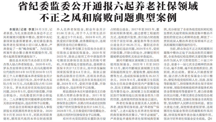 省纪委监委公开通报六起养老社保领域不正之风和腐败问题典型案例