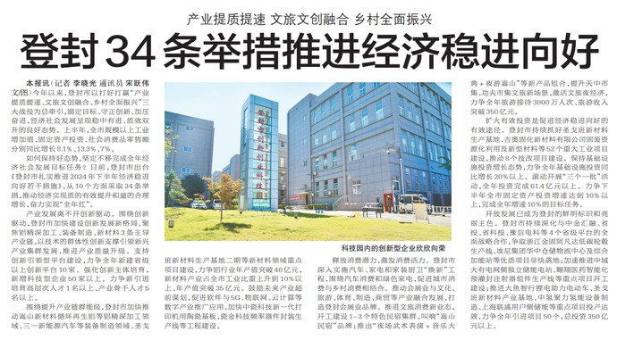 今年以来,登封市以打好打赢“产业提质提速、文旅文创融合、乡村全面振兴”三大战役为总牵引,锚定目标、守正创新、加压奋进,经济社会发展呈现稳中有进、质效双升的良好态势。上半年,全市规模以上工业增加值、固定资产投资、社会消费品零售额分别同比增长8.1%、13.3%、7%。(今日《郑州日报》7版)
