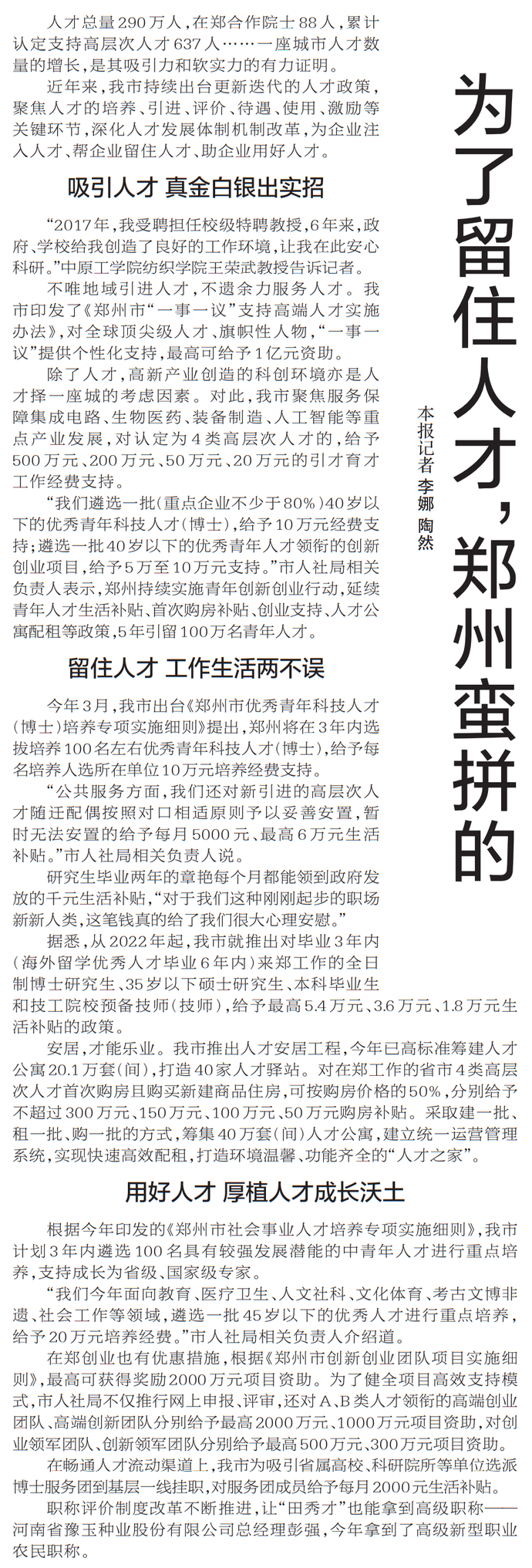 为了留住人才,郑州蛮拼的