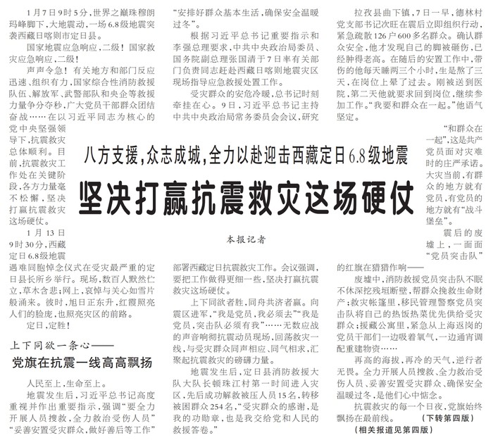 八方支援,众志成城,全力以赴迎击西藏定日6.8级地震