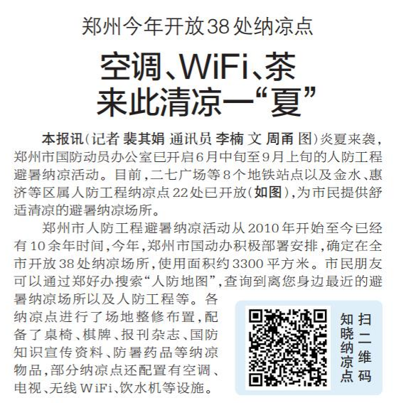 郑州今年开放38处纳凉点