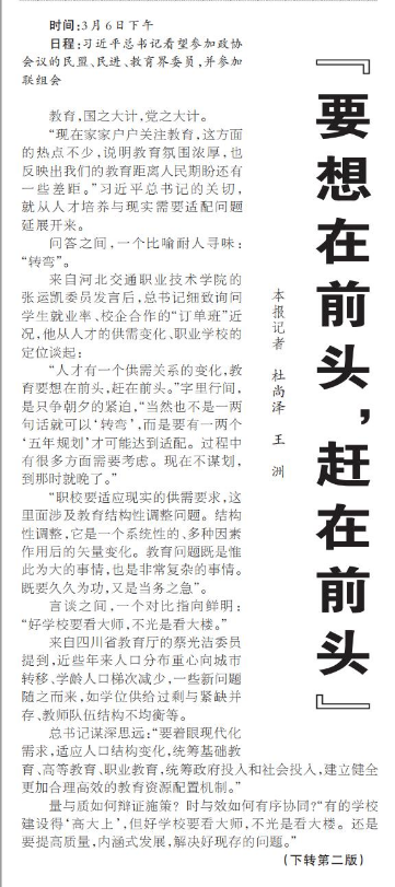 “现在家家户户关注教育,这方面的热点不少,说明教育氛围浓厚,也反映出我们的教育距离人民期盼还有一些差距。”习近平总书记的关切,就从人才培养与现实需要适配问题延展开来。(今日《人民日报》1版、2版)
