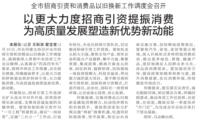 全市招商引资和消费品以旧换新工作调度会召开