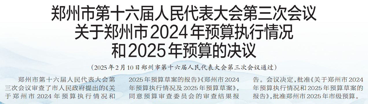 郑州市第十六届人民代表大会第三次会议关于郑州市2024年预算执行情况和2025年预算的决议