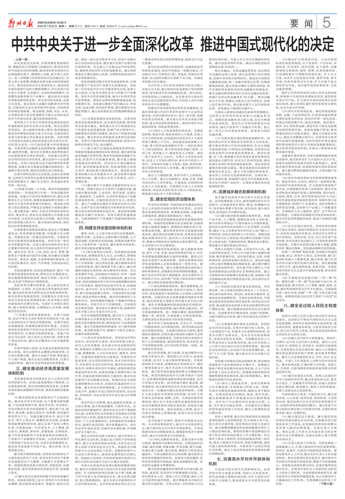 (二〇二四年七月十八日中国共产党第二十届中央委员会第三次全体会议通过)