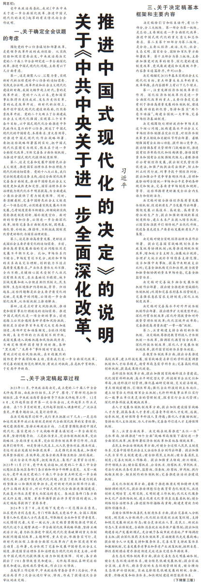 关于《中共中央关于进一步全面深化改革、推进中国式现代化的决定》的说明