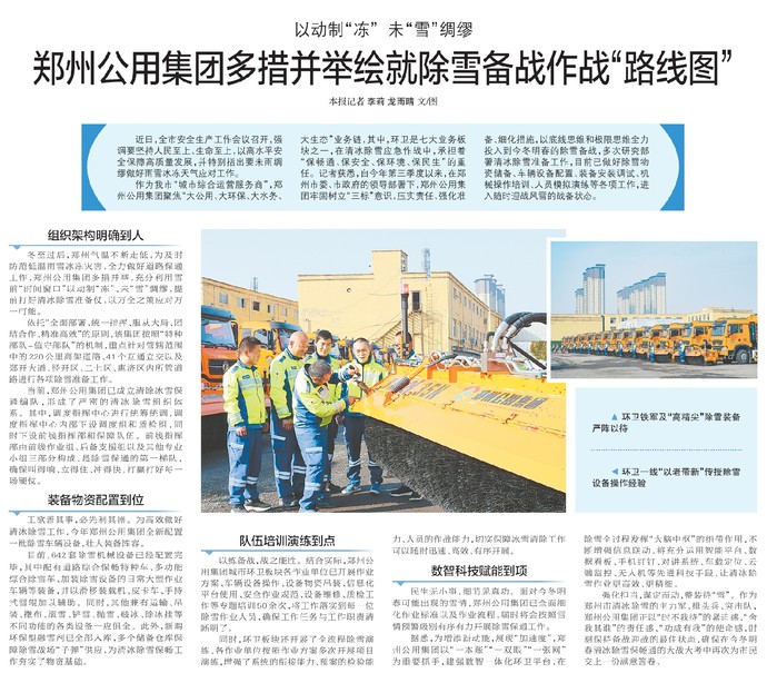 郑州公用集团多措并举绘就除雪备战作战“路线图”