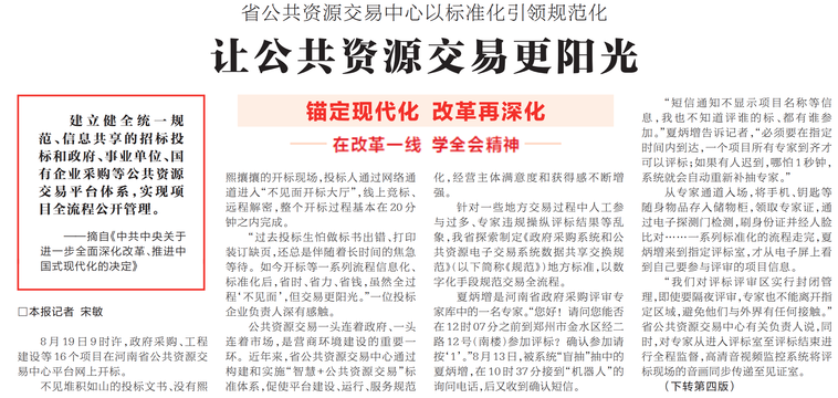 8月19日9时许,政府采购、工程建设等16个项目在河南省公共资源交易中心平台网上开标。(今日《河南日报》1版、4版)