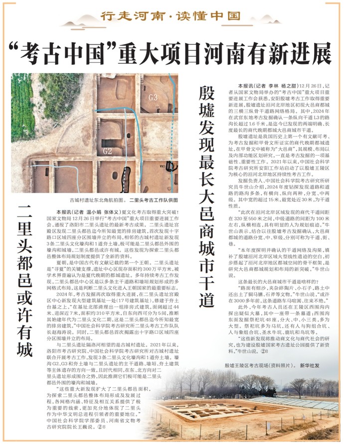 国家文物局12月26日举行“考古中国”重大项目重要进展工作会,通报了最新考古成果。(今日《河南日报》2版)