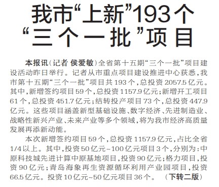 我市“上新”193个“三个一批”项目