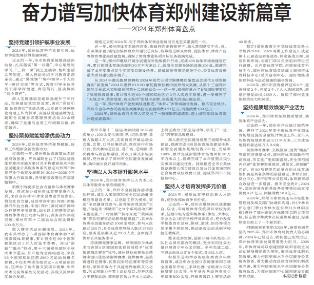 刚刚过去的2024年,对于郑州体育事业发展而言是至关重要的一年。