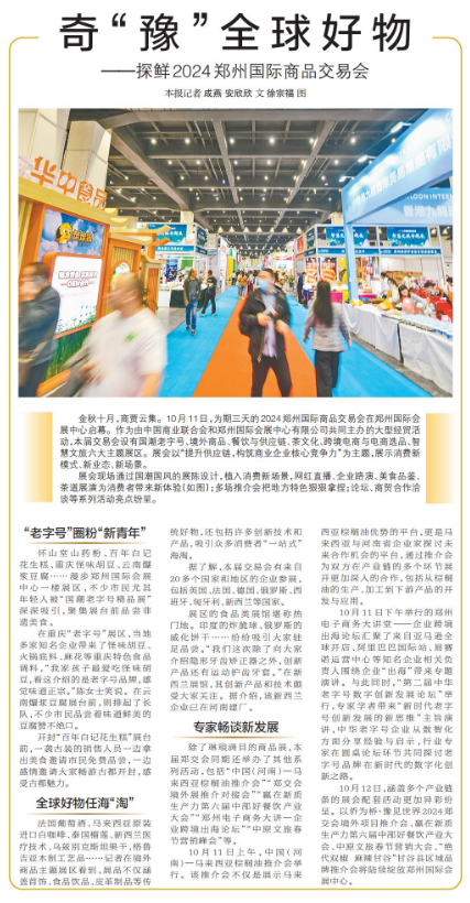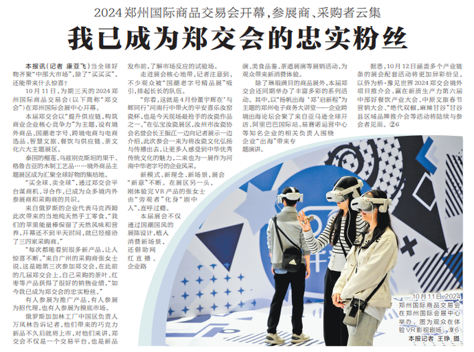 10月11日,为期三天的2024郑州国际商品交易会在郑州国际会展中心开幕。(今日《河南日报》1版)