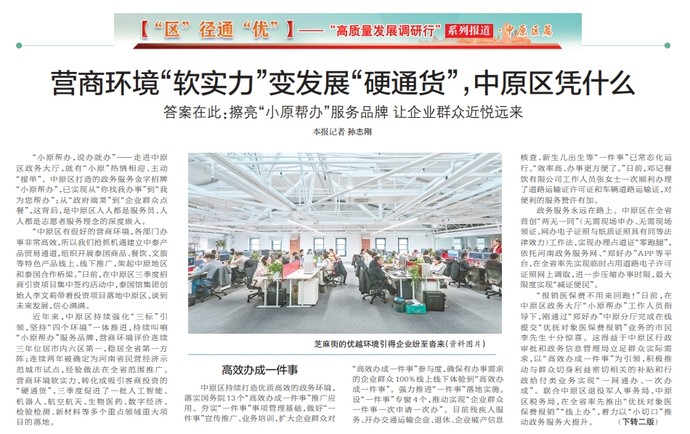 营商环境“软实力”变发展“硬通货”,中原区凭什么