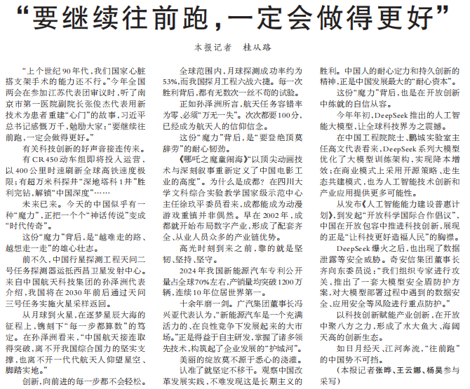 有关科技创新的好声音接连传来。(今日《人民日报》1版)