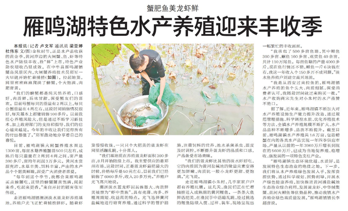 雁鸣湖特色水产养殖迎来丰收季
