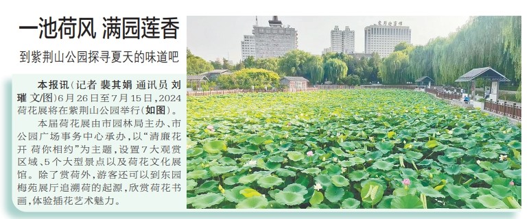 6月26日至7月15日,2024荷花展将在紫荆山公园举行。