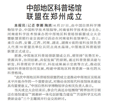 中部地区科普场馆联盟在郑州成立