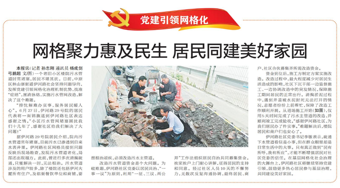 一个老旧小区楼院污水管道时常堵塞,居民不堪其扰。日前,中原区林山寨街道伊河路社会坚持问题导向,发挥党建引领网格化治理机制优势,找准“症结”,厘清脉络,实施污水管网改造,解决了这个难题。(今日《郑州日报》7版)