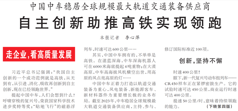 自主创新助推高铁实现领跑