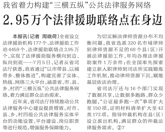 我省着力构建“三横五纵”公共法律服务网络