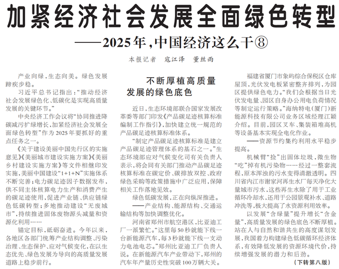产业向绿,生态向美。绿色发展蹄疾步稳。