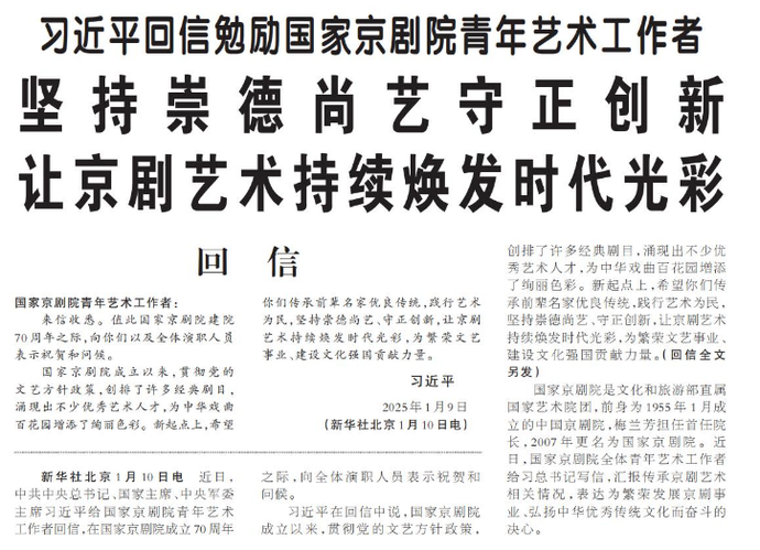 习近平回信勉励国家京剧院青年艺术工作者