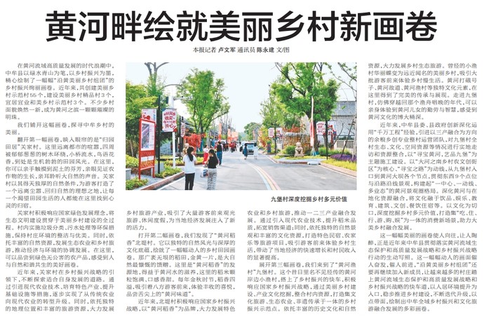 在黄河流域高质量发展的时代浪潮中,中牟县以绿水青山为笔,以乡村振兴为墨,精心绘制了一幅幅“沿黄美丽乡村组团”的乡村振兴绚丽画卷。近年来,共创建美丽乡村示范村55个,建设美丽乡村精品村3个,宜居宜业和美乡村示范村3个。不少乡村面貌焕然一新,成为黄河之滨一颗颗璀璨的明珠。(今日《郑州日报》7版)