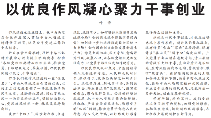 以优良作风凝心聚力干事创业
