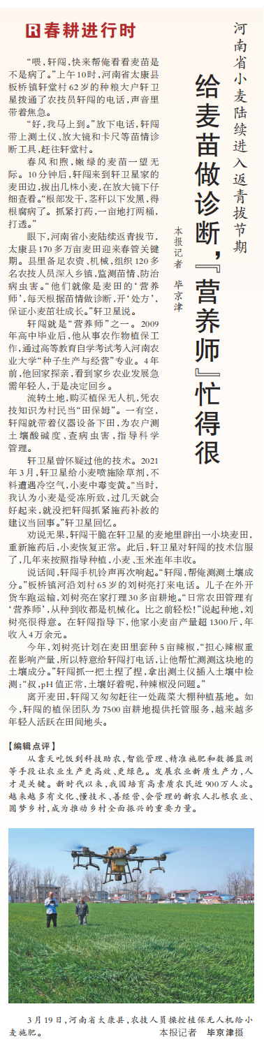 给麦苗做诊断,“营养师”忙得很