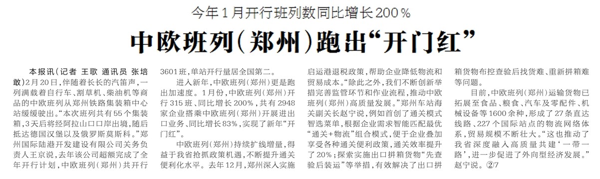 中欧班列(郑州)跑出“开门红”