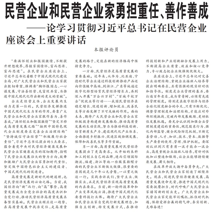 民营企业和民营企业家勇担重任、善作善成